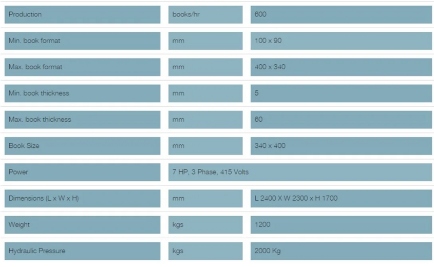 After Casing-in the book automatically moves one by one in the conveyer towards the inline hydraulic joint formating station. Every individual book is joint-formed two times at two stations respectively. Finally finished book is delivered into the rear end.