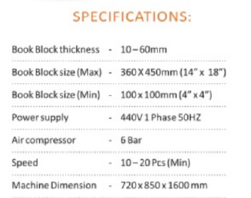 This Machine applies a thin coat of adhesive to your Book Block End Papers as well as allows the operator to easily & consistently Case-In your Hardcover over your book block. Finishing your Hardcover Book easily & cost effectively !