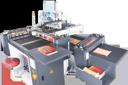 It can be set up from 1 to maximum 5 board sections to produce luxury boxes, rigid covers and mono-piece works with lining, windowed and special side profiles, without any mechanical adjustment.